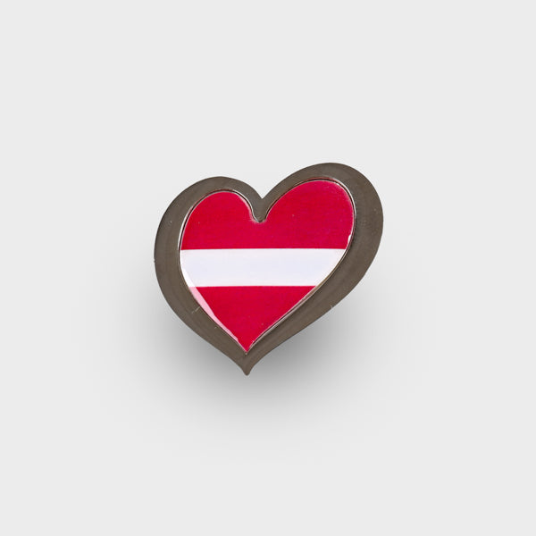 Soft enamel pin badge featuring the 'Latvia' Eurovision Heart logo.