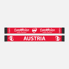 Double sided satin printed scarf featuring 'Austria' on one side and 'Eurovision Song Contest' on the other.